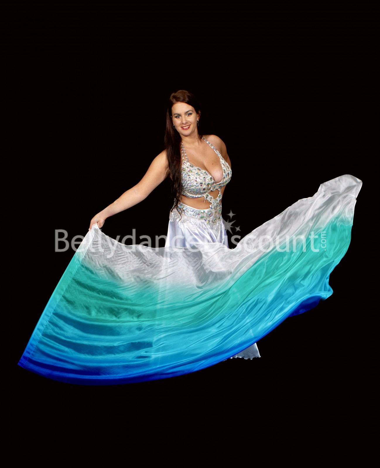 Werden Sie weich für dieses außergewöhnliche Aussehen dieses tollen wasserblauen Kleides für den orientalischen Tanz!