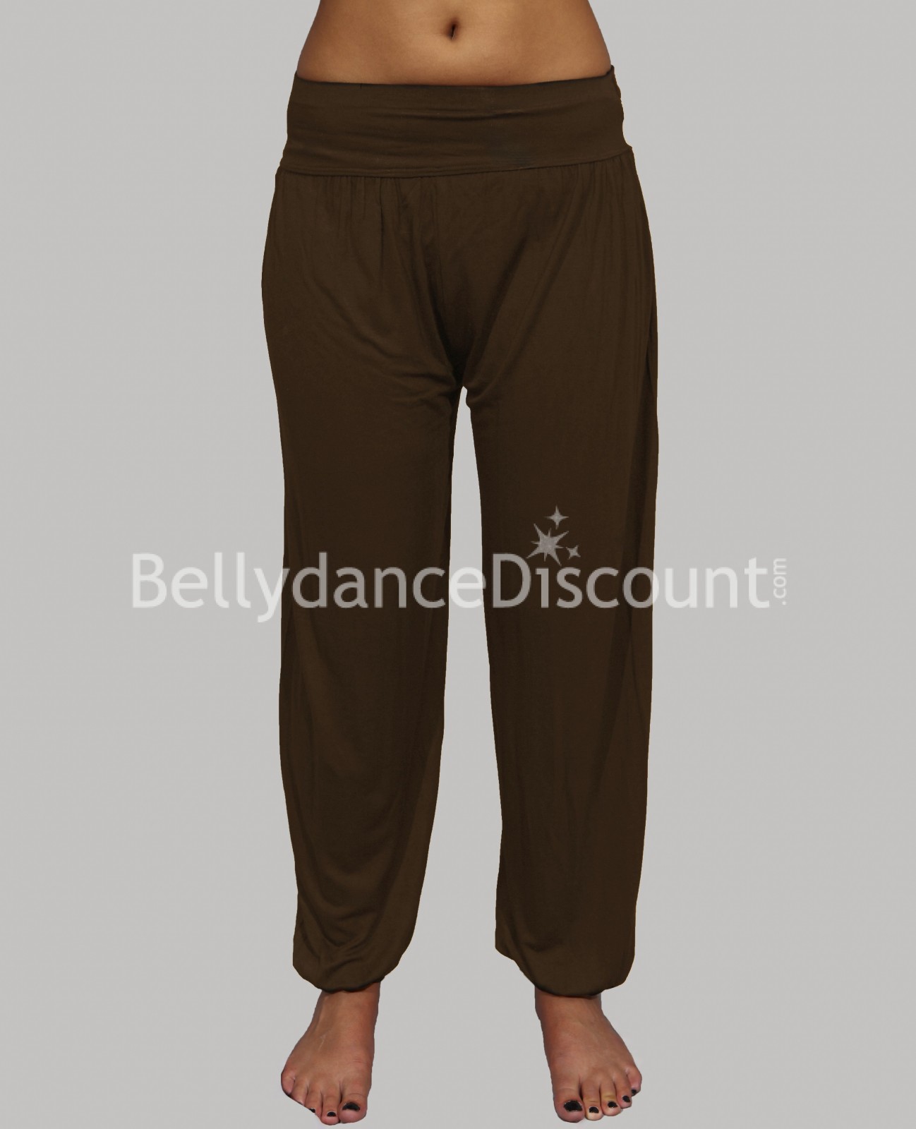 Sirwal aus Baumwolle, elastisch in Höhe der Taille, sehr weit an den Beinen und schließlich enger in Höhe des Fußknöchels.