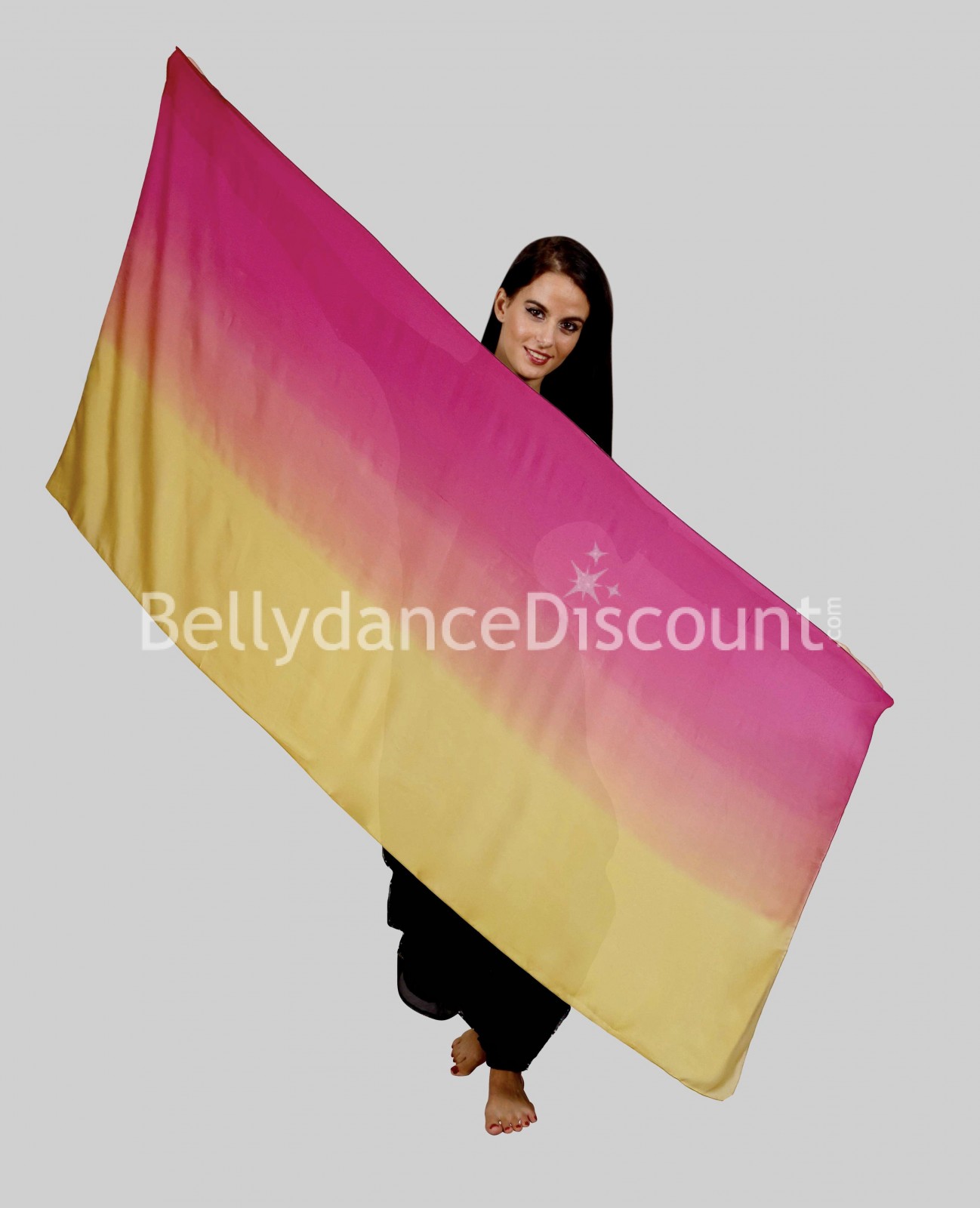 Sein leuchtender Farbverlauf harmoniert wunderbar mit Ihrem Kostüm und nimmt Ihr Publikum sofort mit auf eine wunderbare Reise in die Mitte des Orients.