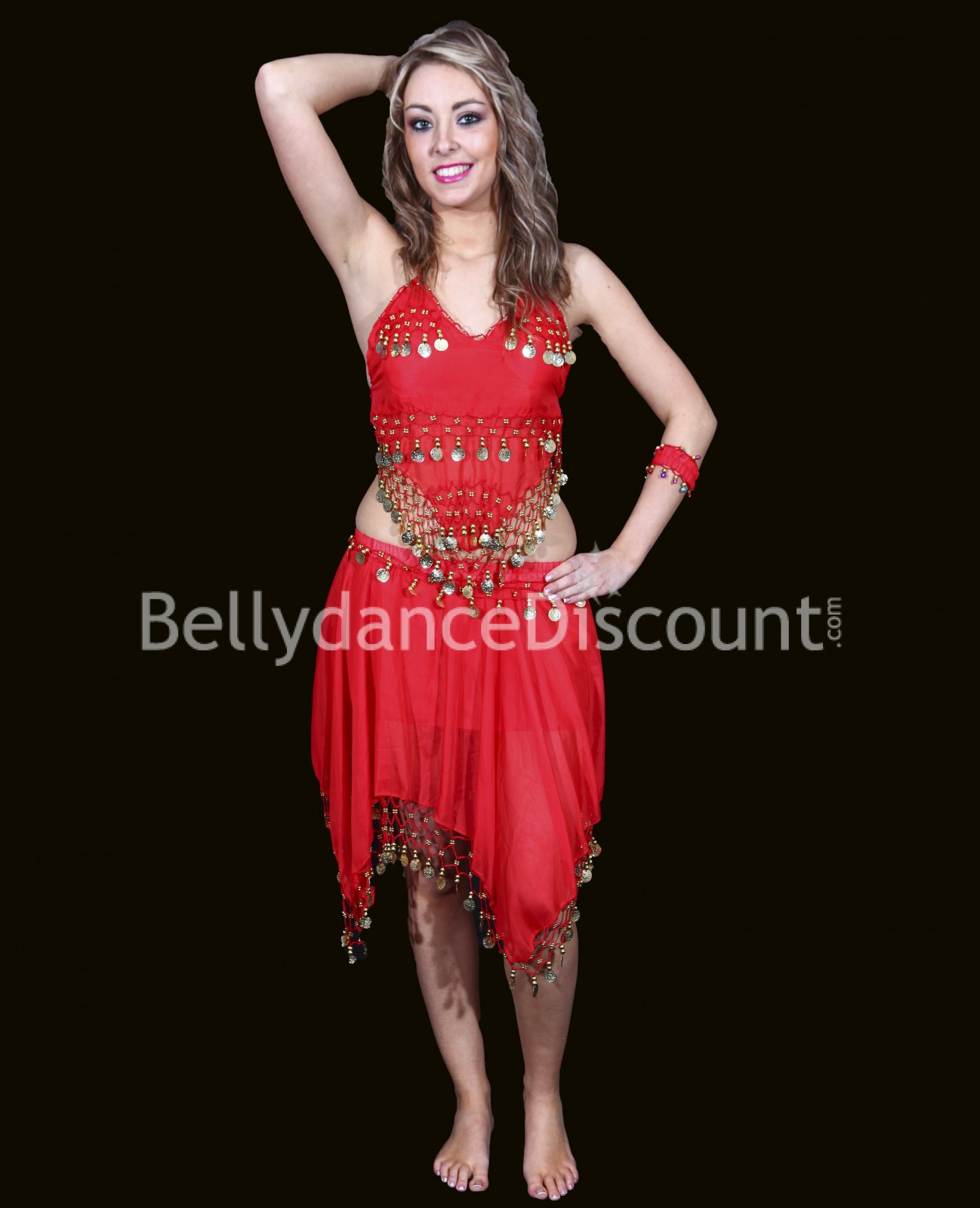 Übertragen Sie die Magie des Orients auf Ihre Zuschauer mit diesem kurzen Top für den orientalischen Tanz in rot und angeboten zum Schnäppchen