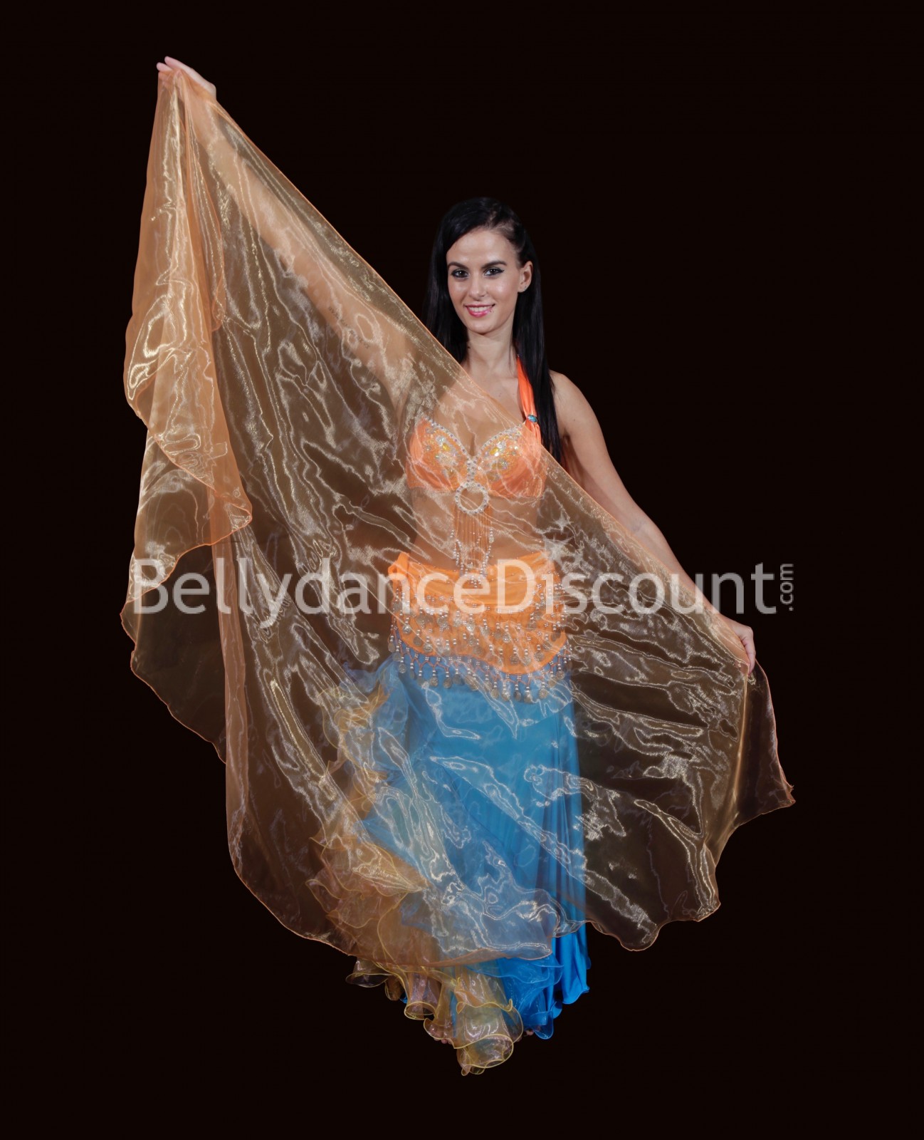 Glänzen Sie von Kopf bis Fuß mit diesen wunderschönen Armstulpen für den orientalischen Tanz mit Schleier in Orange und zum Discountpreis !