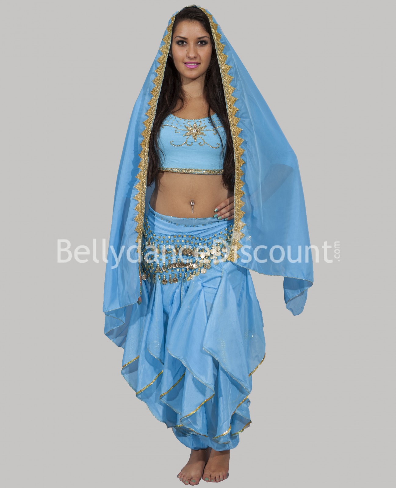 Verlieben Sie sich in diesen traditionellen Schleier für den orientalischen Tanz in Hellblau zu einem reduzierten Preis für Bauchtanz-Choreographien voller Anmut und Magie!