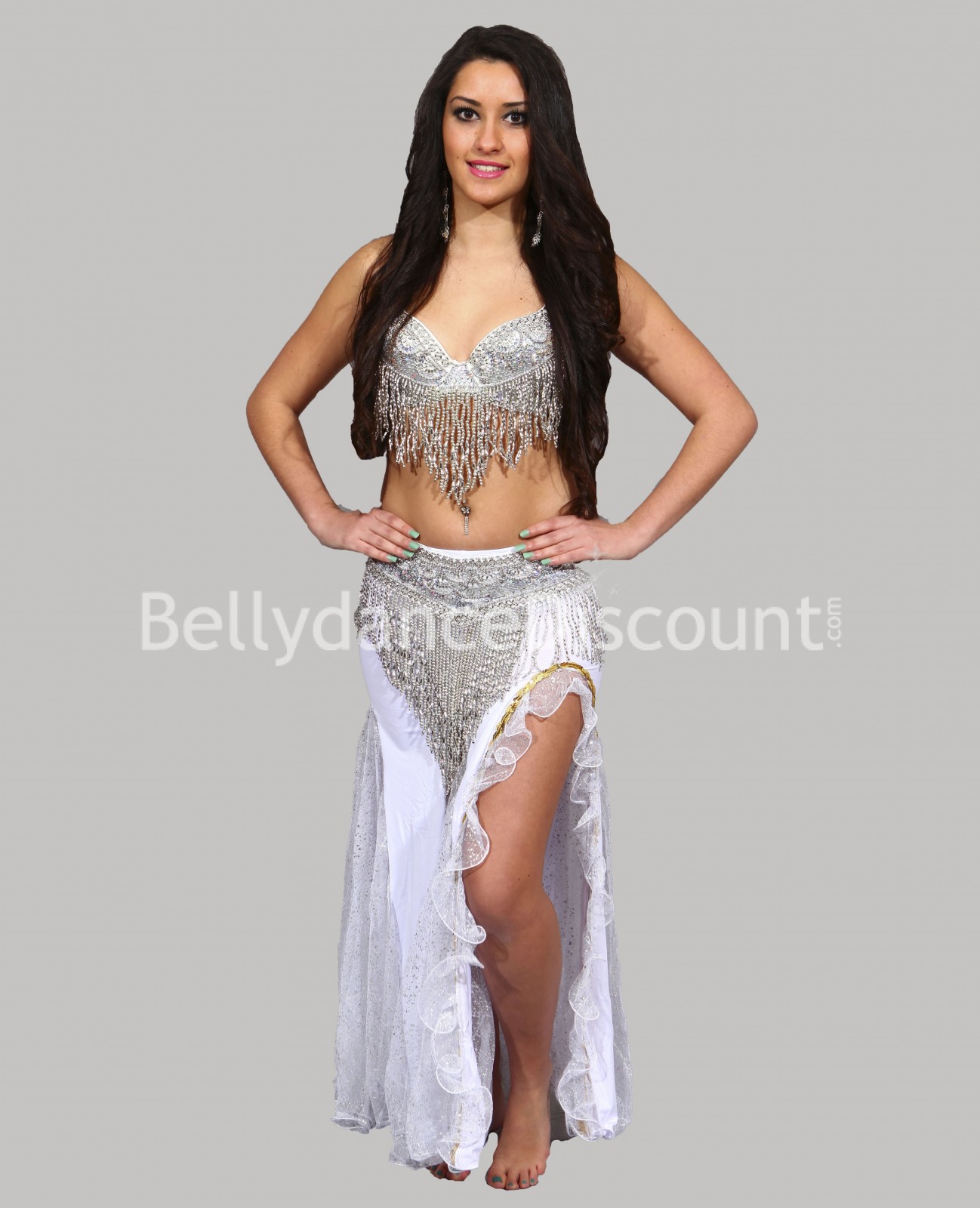 Entre en el sueño y la magia de la danza del vientre con este esplendido set de sujetador + cinturón plateado. ¡Al mejor precio!