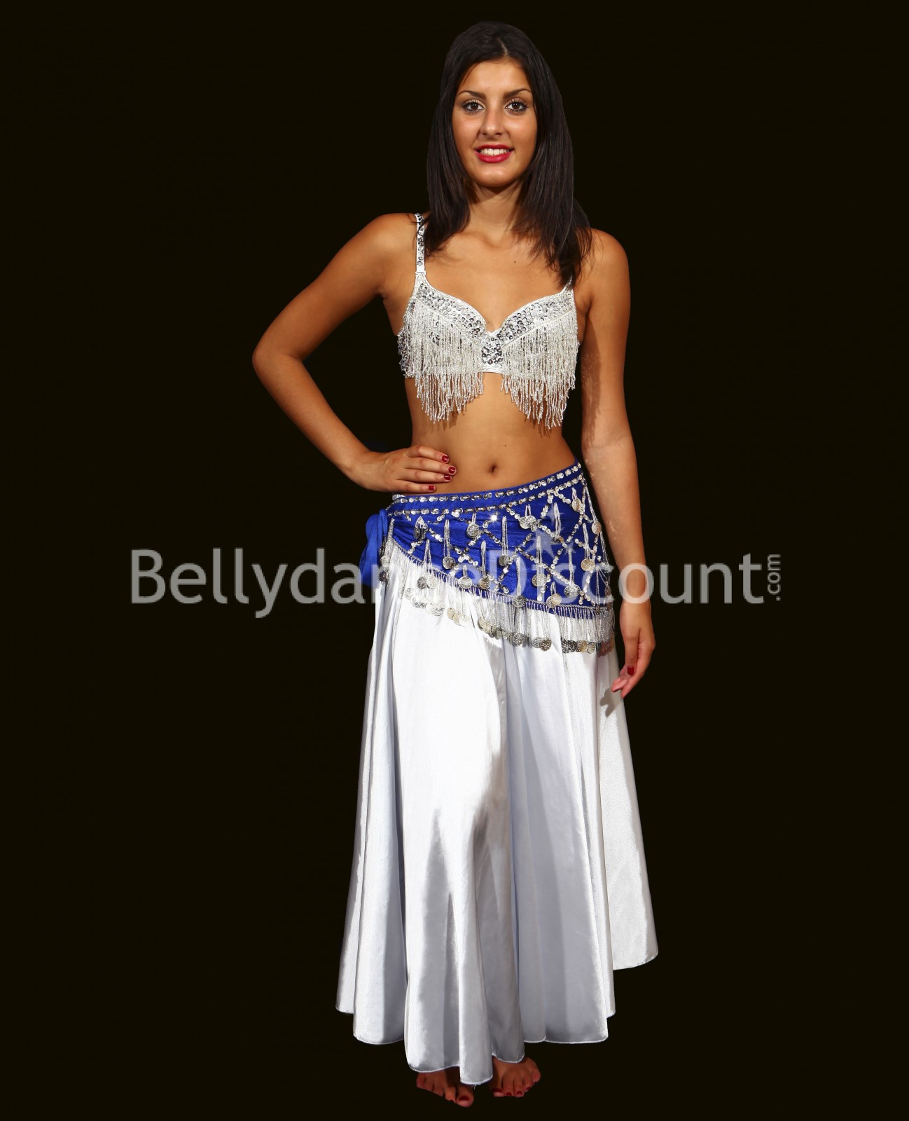 Baile sin descanso con este hermoso y autentico cinturón blanco y plateado para danza del vientre. ¡Al mejor precio del mercado!