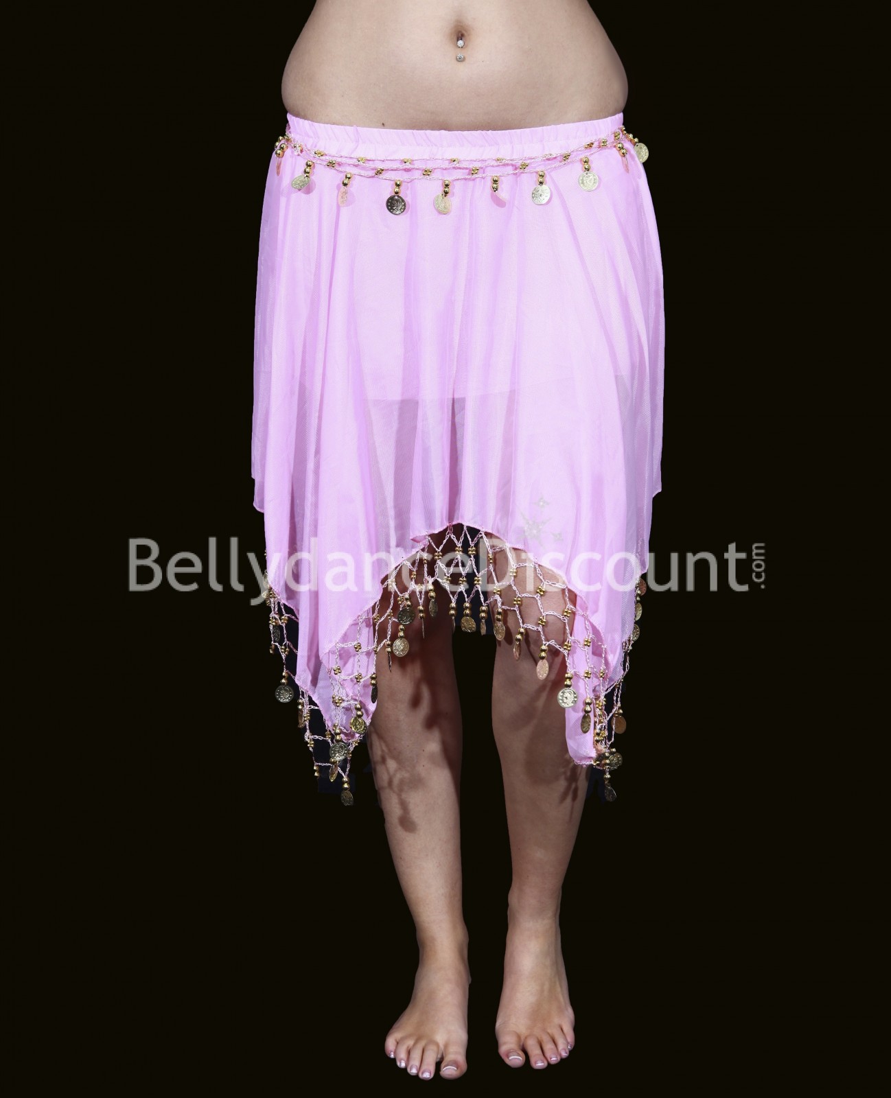 Déjese seducir por esta hermosa falda corta rosa pálido para danza del vientre. ¡con un precio imbatible!