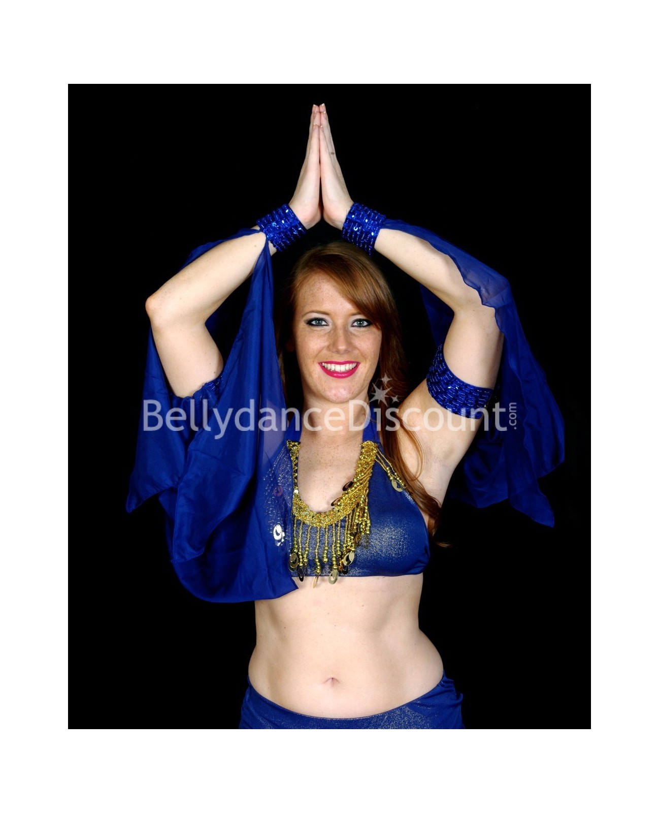 Enamórese de las numerosas virtudes de este top de danza del vientre azul oscuro ideal para el escenario y los espectáculos…
