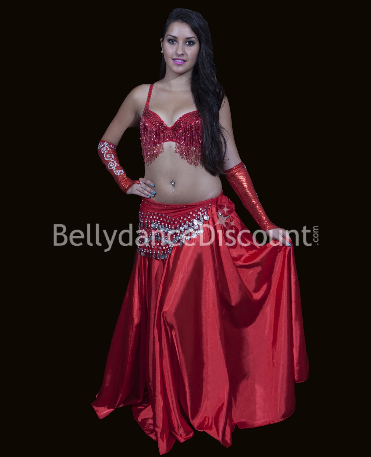 Para todos sus espectáculos de danza del vientre, apueste por la clase y la elegancia con esta preciosa falda íntegramente en satín...