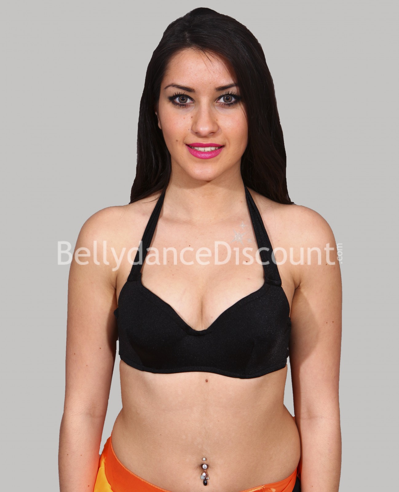 Déjese tentar por este hermoso sujetador negro para cursos de danza del vientre, ideal para personalizar según sus deseos.