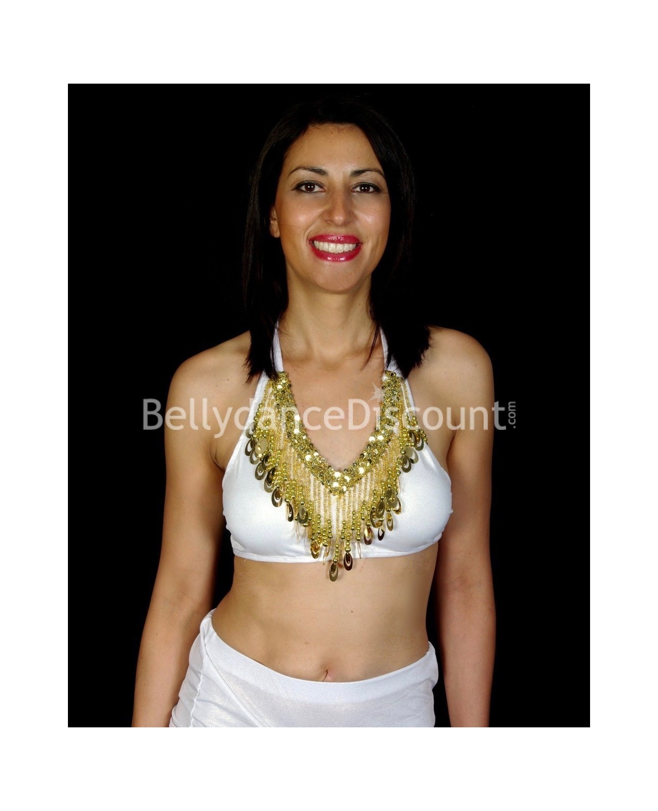 Enamórese de las numerosas virtudes de este top de danza del vientre blanco ideal para el escenario y los espectáculos…