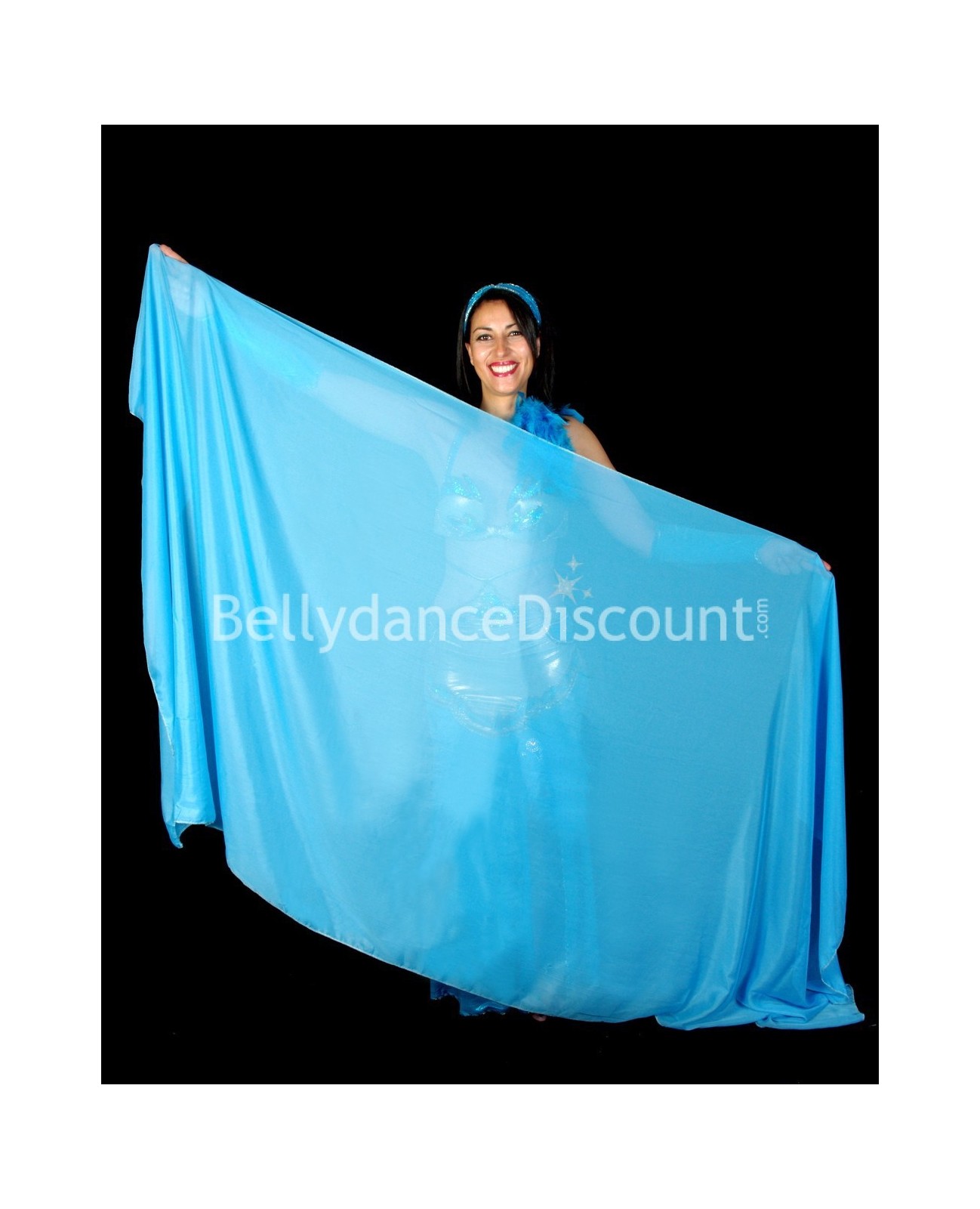 Para coreografías de danza del vientre llenas de gracia y magia, ¡enamórese de este tradicional velo de danza oriental azul claro a precio con descuento!