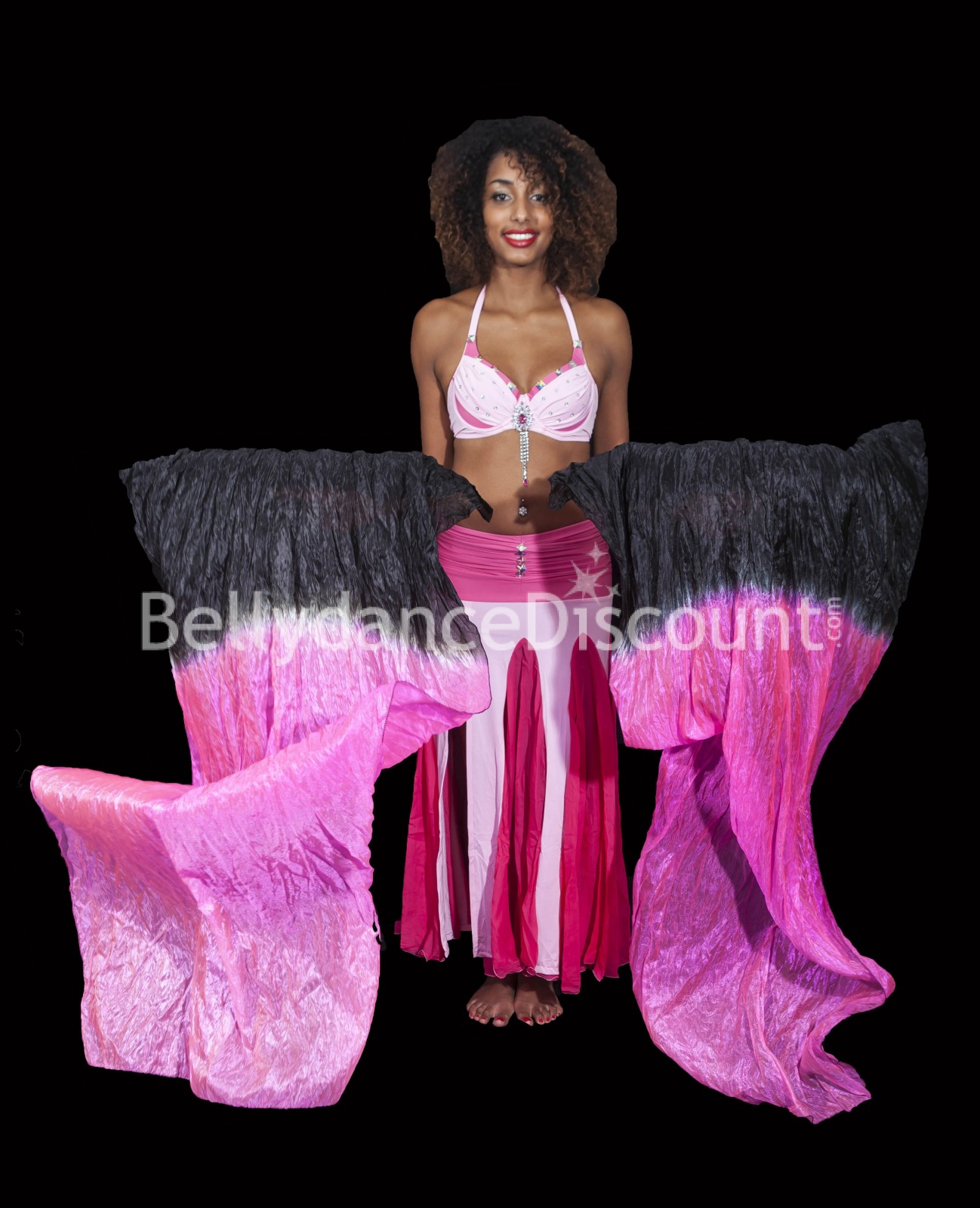 Laissez-vous séduire par cette magnifique paire d'éventails de danse orientale dégradée noir fuschia, à prix discount !