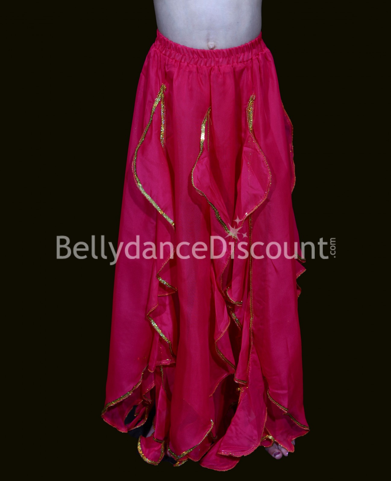 Alliez grâce et authenticité avec cette pétillante jupe enfant de danse orientale à volants fuschia, à prix discount !
