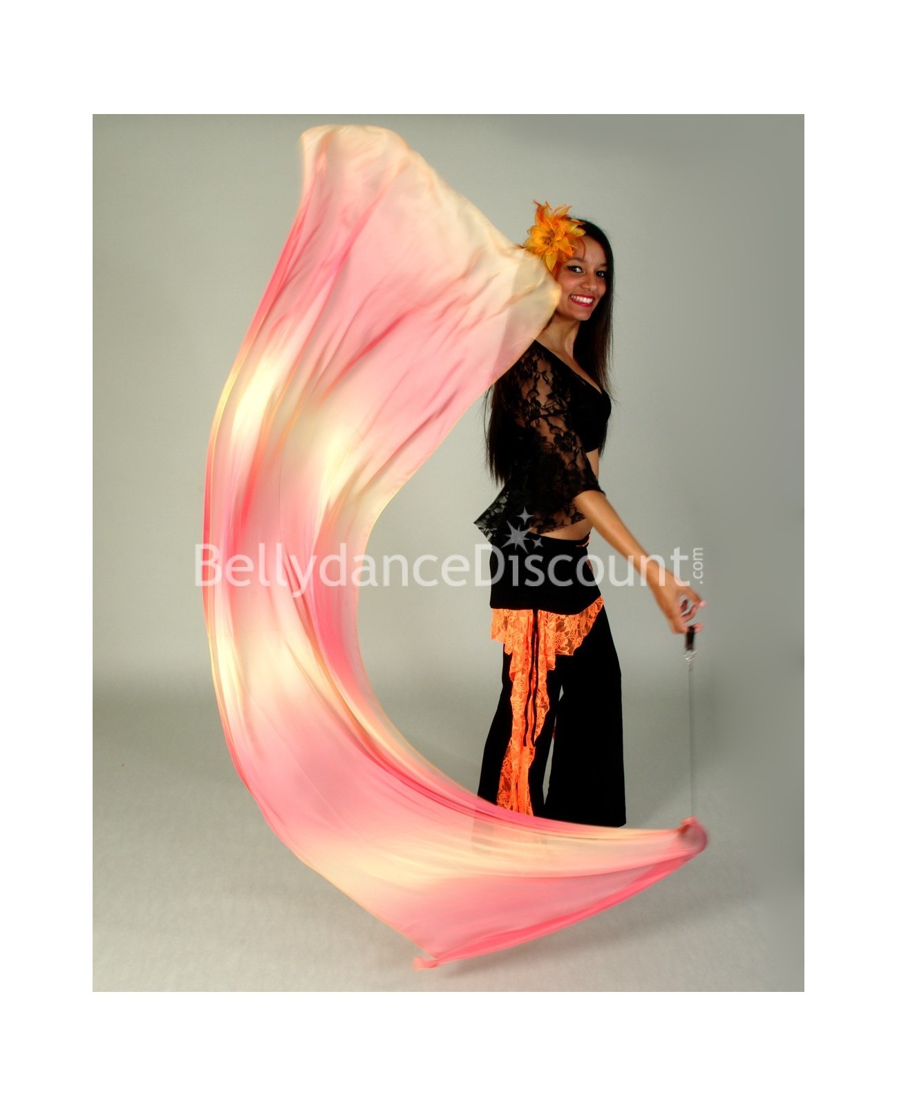 Laissez-vous séduire par ce magnifique Veil Poi de danse orientale rouge orangé jaune, à prix discount !