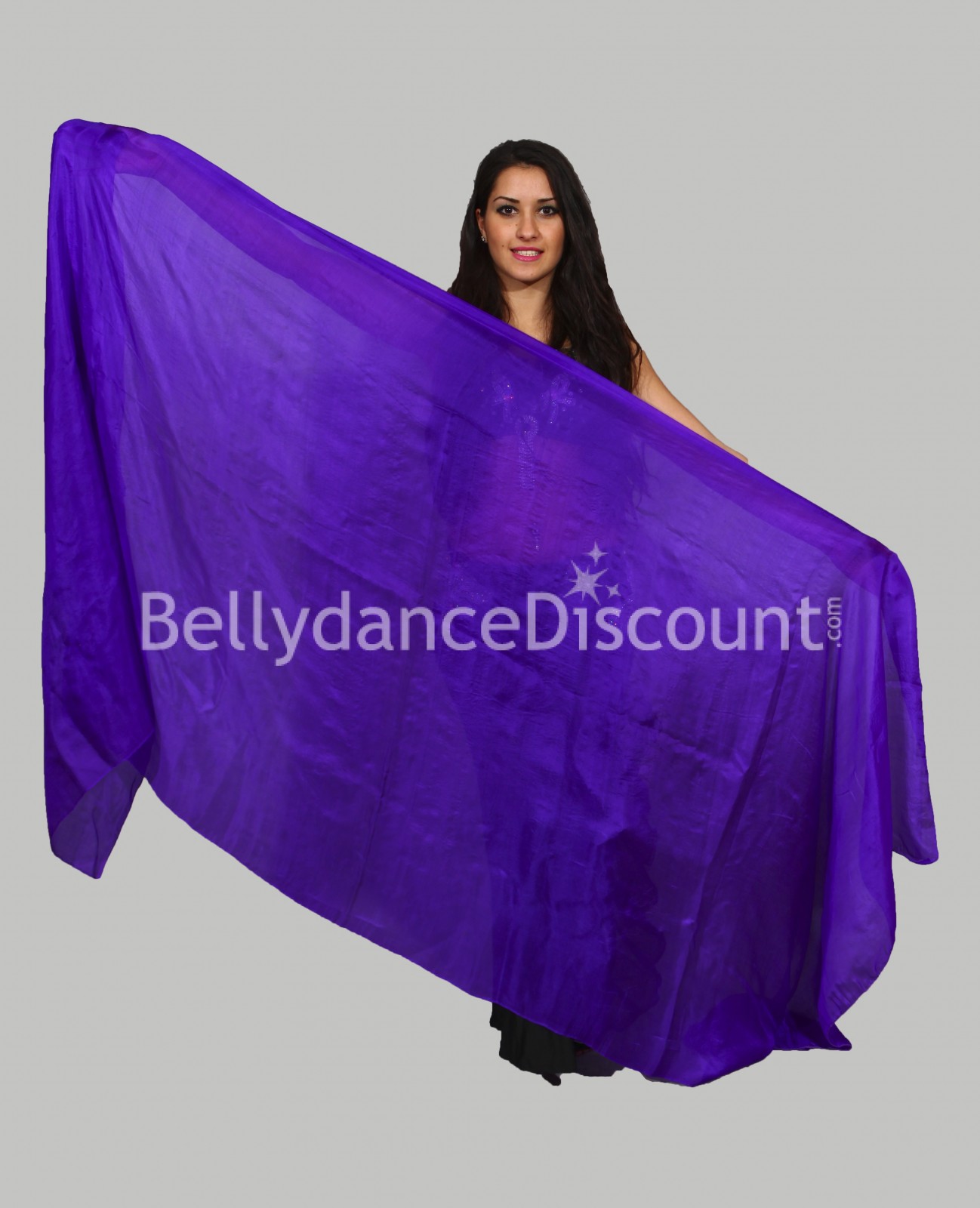 Laissez-vous séduire par ce magnifique voile rectangulaire violet de danse orientale en pure soie, à prix discount !