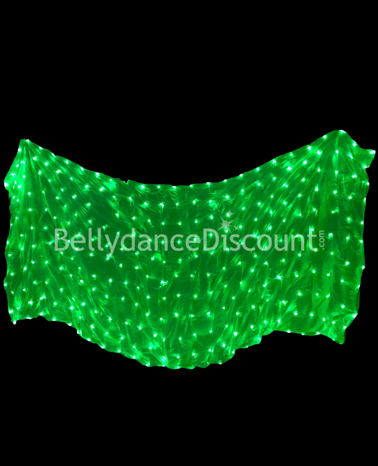Envie d'impressionner votre public et de le laisser sans voix lors de votre prochain show ? Optez pour ce voile de danse orientale lumineux en soie équipé de Leds vertes !