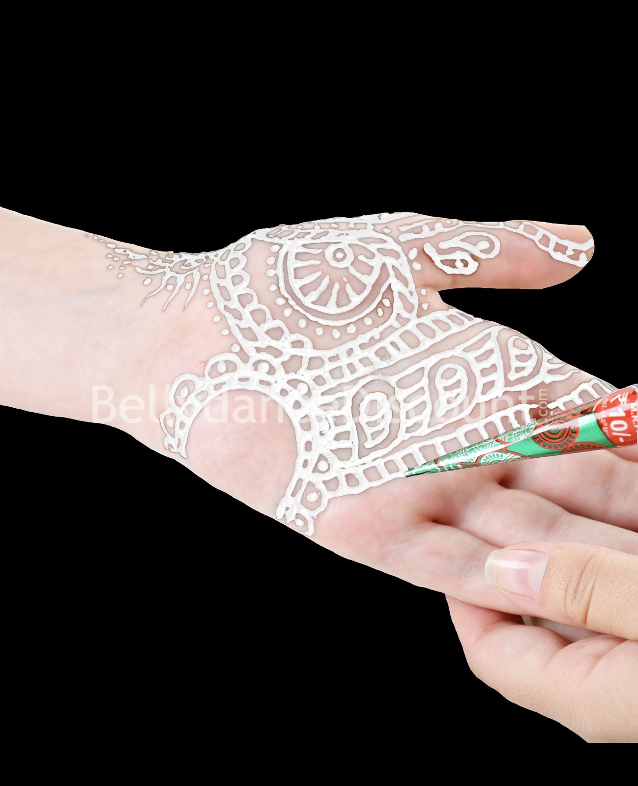 - Disegna i tuoi tatuaggi premendo leggermente sul cono in modo da utilizzare la quantità di henné desiderata