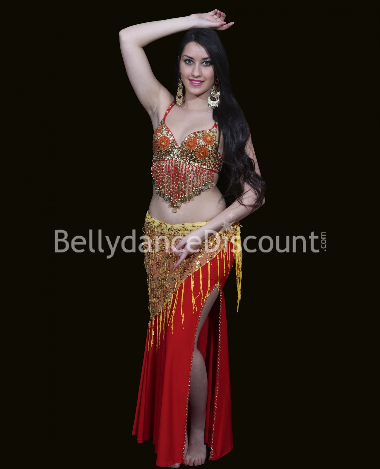 Lasciati sedurre dai tanti vantaggi di questo top di danza del ventre giallo perfetto per il palcoscenico e gli spettacoli…