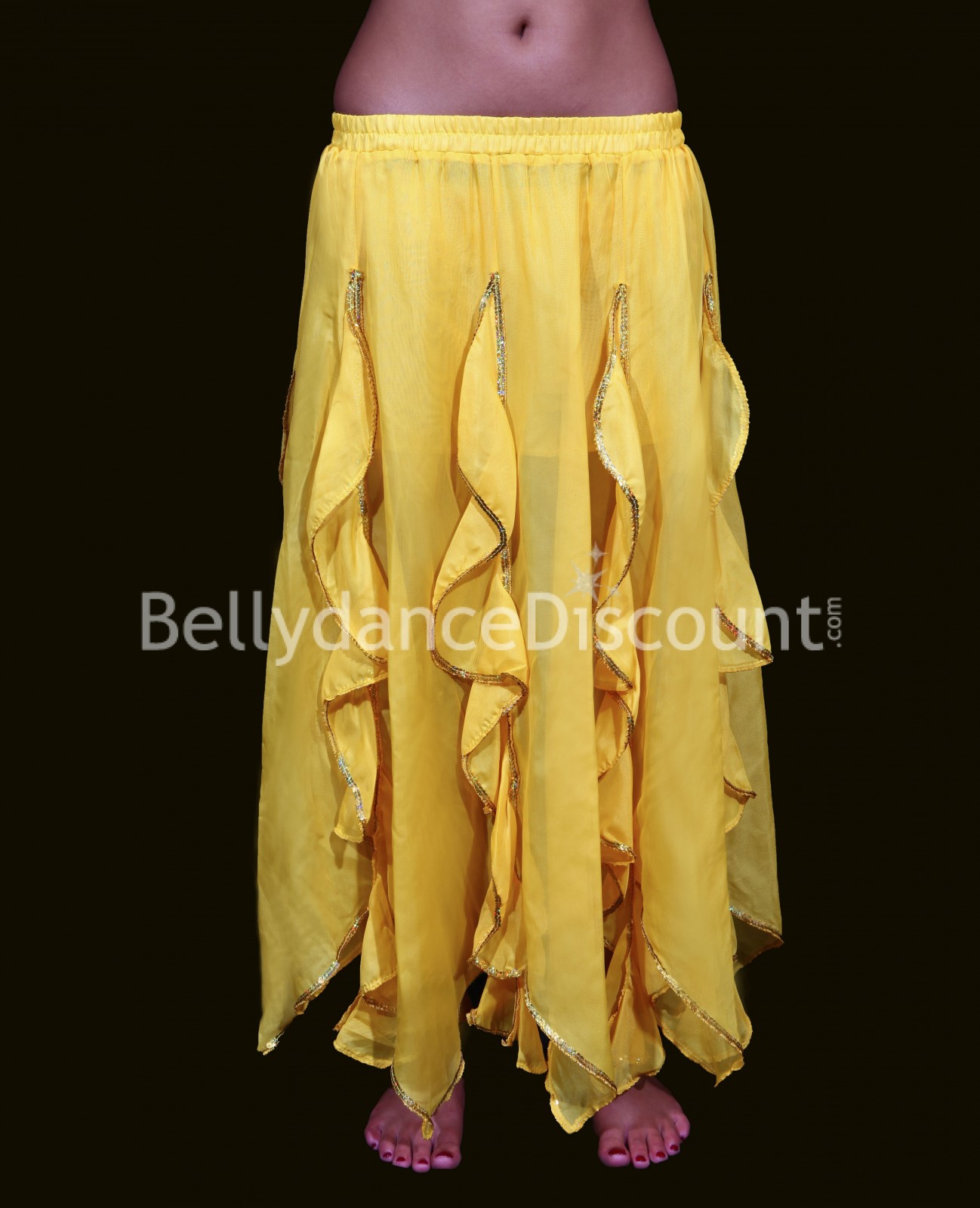 Si lasci sedurre da questa magnifica cintura di danza del ventre gialla con sequin dorati, a prezzo scontato!