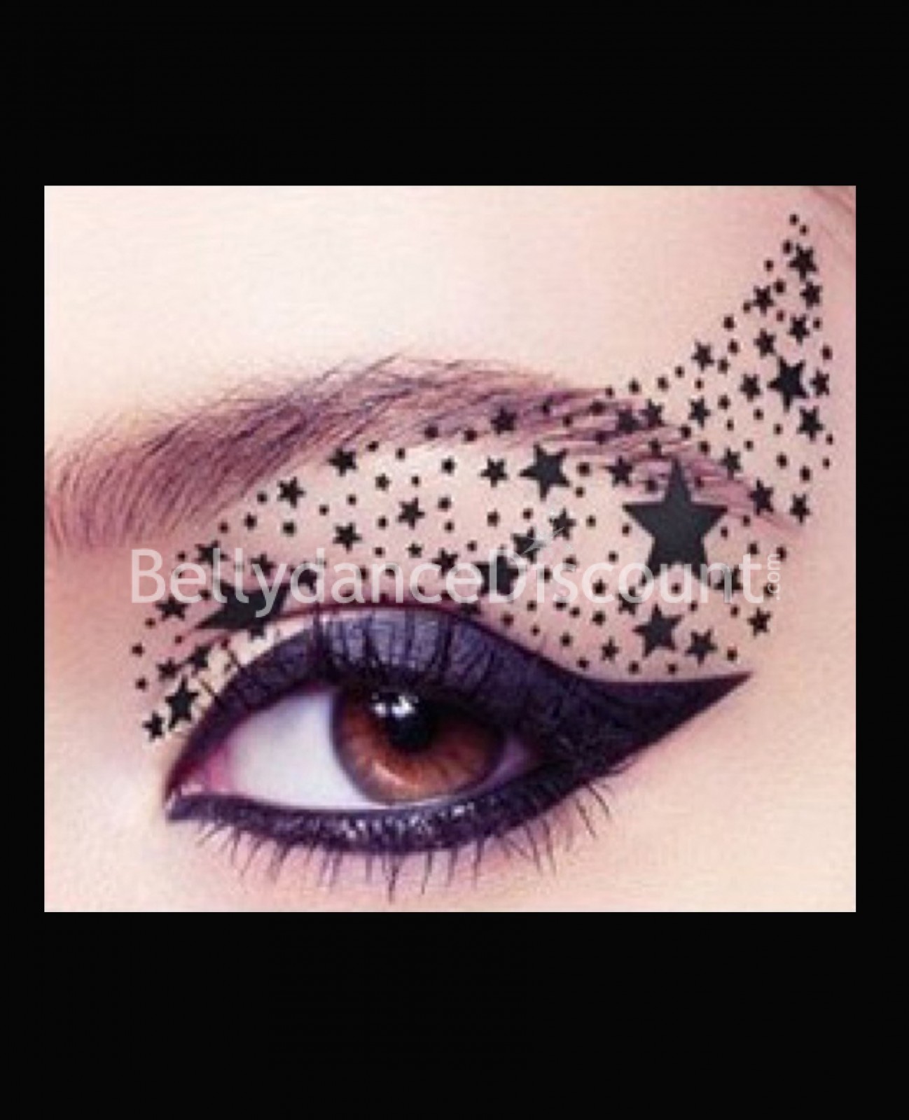 Tattoo adesivo da posizionare facilmente sullo sguardo che darà un tocco di brillantezza e di mistero a tutti i Suoi vestiti di danza del ventre.